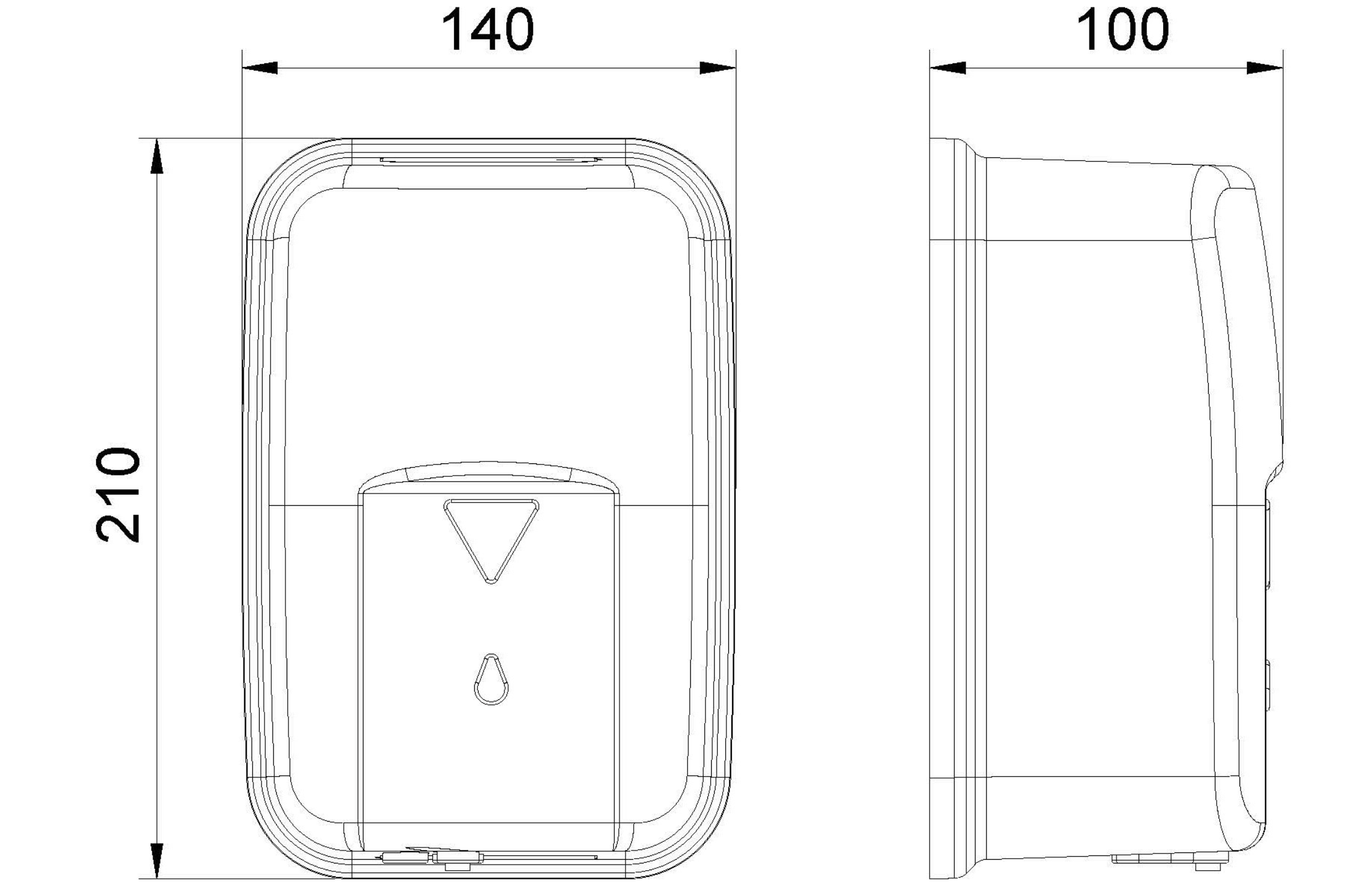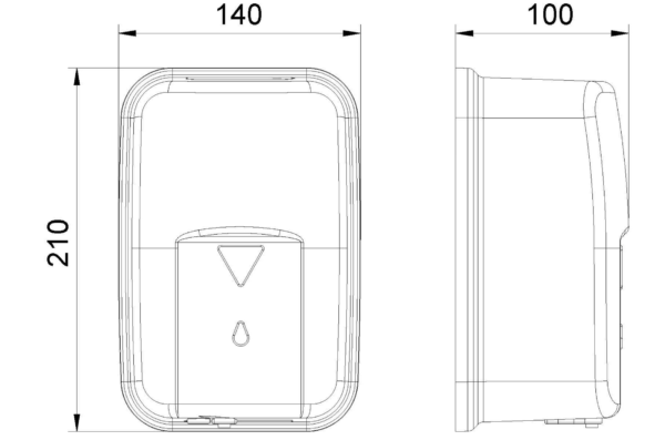 As dimensões do doseador são 21 cm de altura x 14 cm de largura x 10 cm de profundidade.