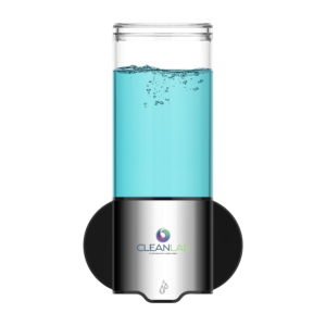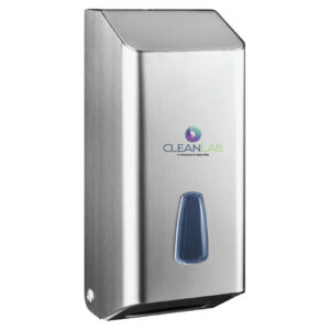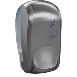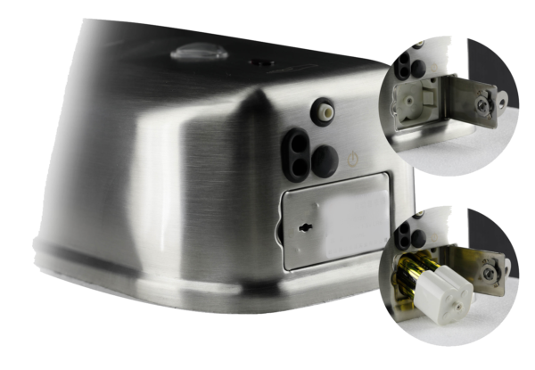 Com um visor para verificar a quantidade de sabão e fecho de segurança.