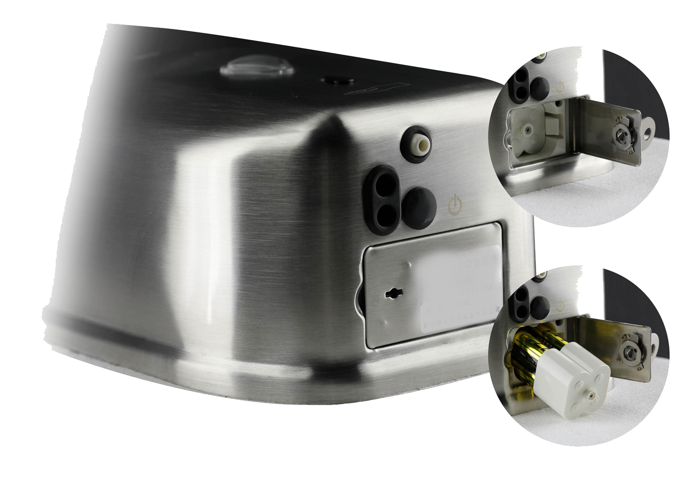 Doseador de sabão líquido para colocar na parede, com acionamento automático através de sensor de infravermelhos.