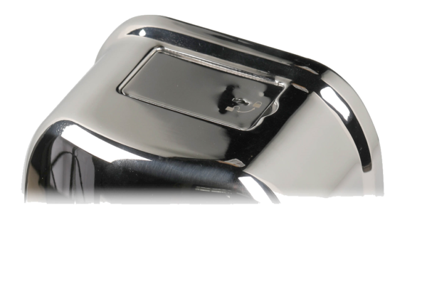 Fabricado em aço inoxidável com um acabamento brilhante.